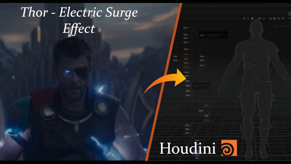 Hi I created an Electric Surge Effect in Houdini inspired by Thor Ragnarok movie I made the lightning surge across the body just like in the movie.